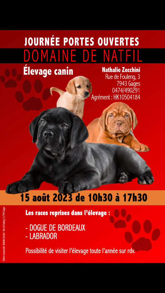 Nous sommes ravis de vous présenter notre famille canine et notre philosophie d’élevage. Pour la quiétude de nos loulous et le bon déroulement de la journée, les chiens extérieurs ne sont pas admis. Merci pour votre compréhension Partager : Partager sur X(ouvre dans une nouvelle fenêtre) X Partager sur Facebook(ouvre dans une nouvelle fenêtre) Facebook J’aime chargement… Similaire Navigation des articles Précédent Article précédent : Réussite de ma formation » St. Hubert ».